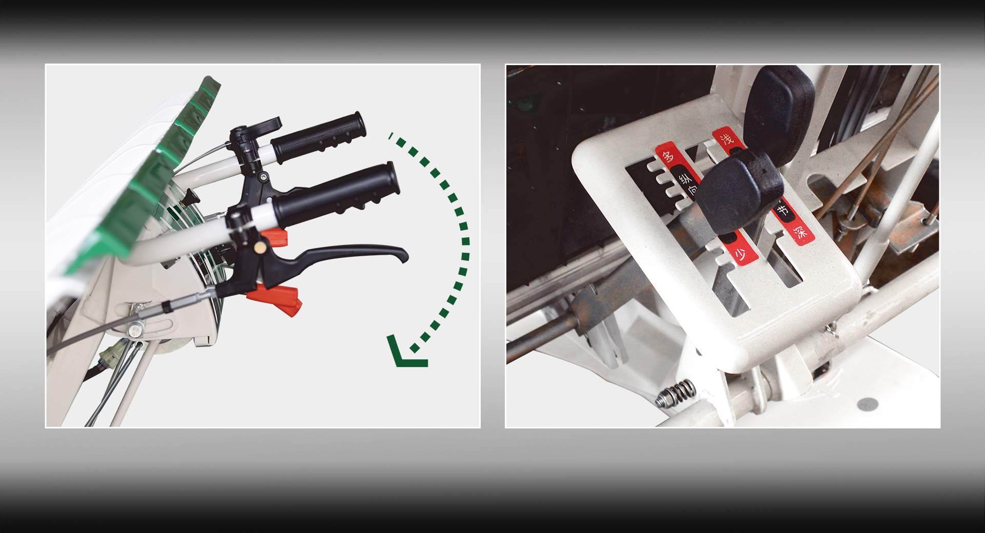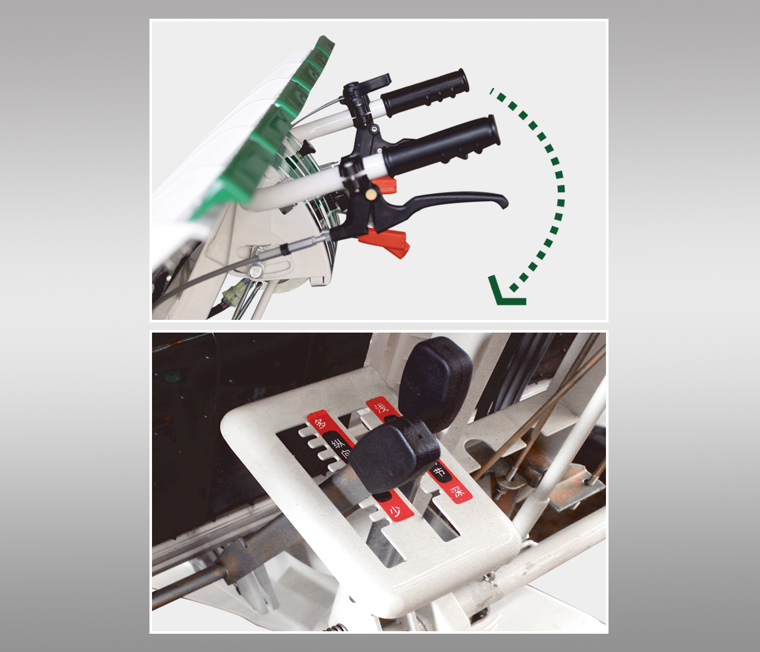 手把高度可調(diào),機(jī)手操作更舒適; 配備3種橫向取苗量齒輪及9級縱向取苗量檔位,取苗量調(diào)節(jié)范圍大; 加強(qiáng)型插深調(diào)節(jié)手柄,強(qiáng)度提高50%。