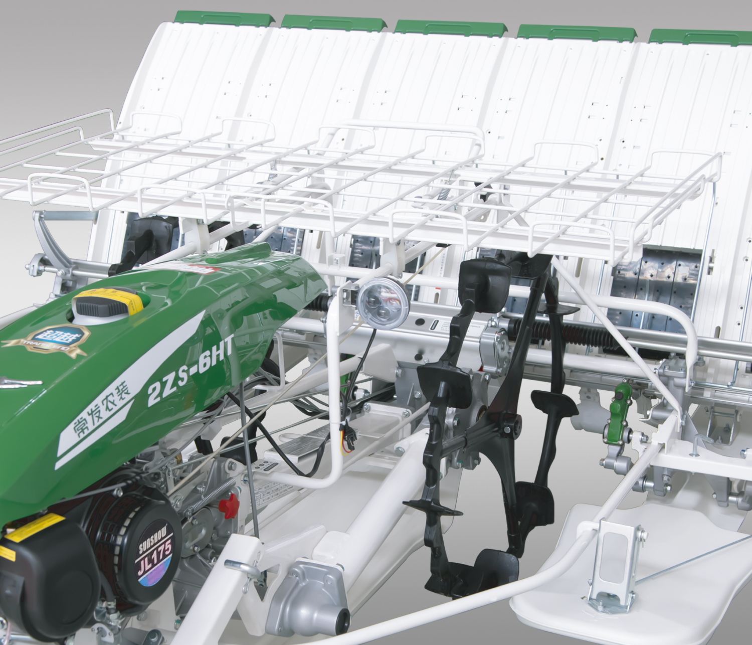 無級移動式預(yù)備苗盤,取秧更便捷; 特殊材料設(shè)計(jì)制作的車輪驅(qū)動軸油封,使用壽命達(dá)到500小時(shí)無滲漏。