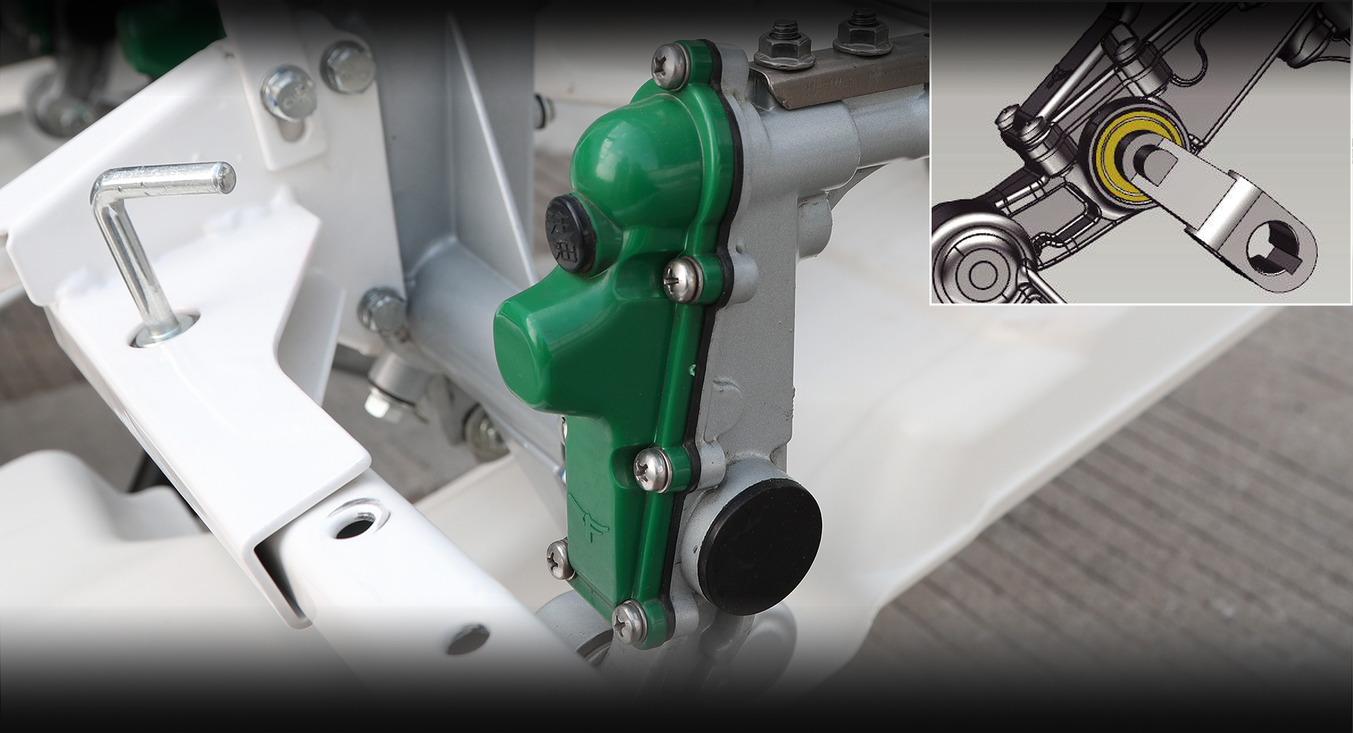 具備變速檔位護(hù)套,有效防止泥水侵蝕。 加強(qiáng)型Φ6毫米直徑操縱拉桿。 變速箱強(qiáng)化設(shè)計(jì),強(qiáng)度高,抗拖拽性好;關(guān)鍵軸承采用進(jìn)口件。