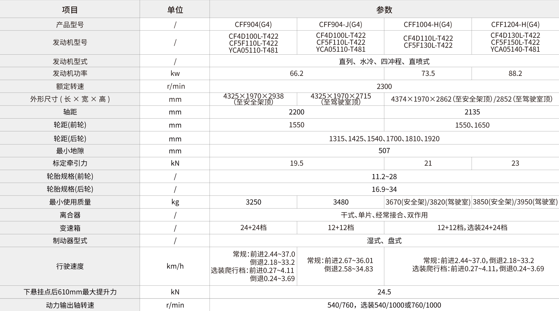作業(yè)檔位多,標(biāo)配為12+12檔變速箱,選裝為24+24爬 行檔。